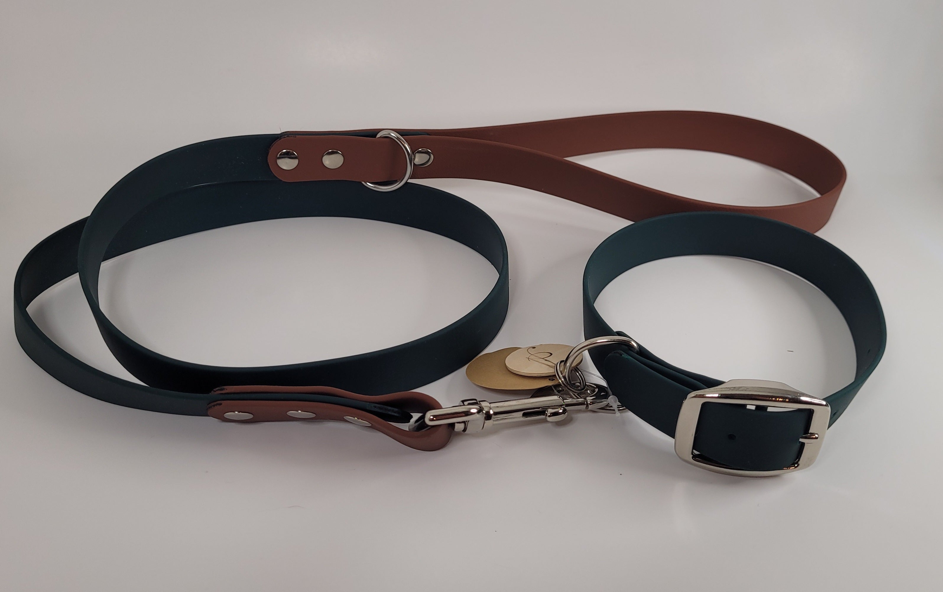 Over time the hardware will begin to show signs of wear. The Nickel Plated, and Black Plated hardware will change color, chip or peal over time this is normal. with the exception of solid brass and stainless steel. These problems are only cosmetic and they do not affect the hardware's long-term durability. It's normal for tarnish it happen and it can stain your dog's fur, biothane and straps on bags. Tarnish is gunk that builds up on hardware over time. Washing collar on a regular basis is the best way to avoid this from happening. It is important to dry off the metal hardware after it gets wet when the gear is in use. Tis will prevent hardware from rusting. Keep in mind that harsh cleansers and detergents can damage hardware's finish and discolor the Biothane.
