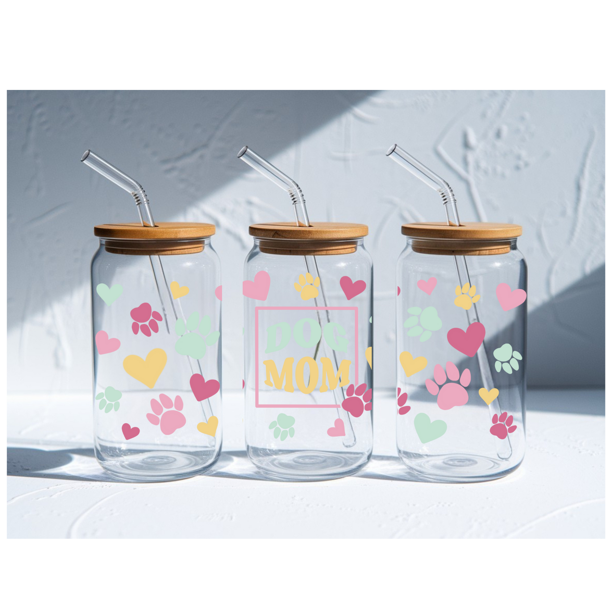 Looking for a unique way to enjoy your favorite cold drink our 16oz glass can cup with bamboo lid and glass straw is a dog mom's must have!