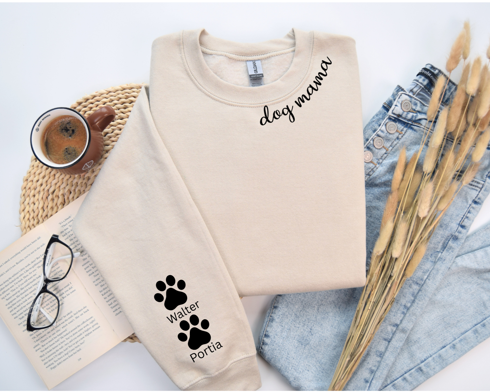 Custom Dog Mom / Dog Dad Crewneck with Paw prints on Sleeve