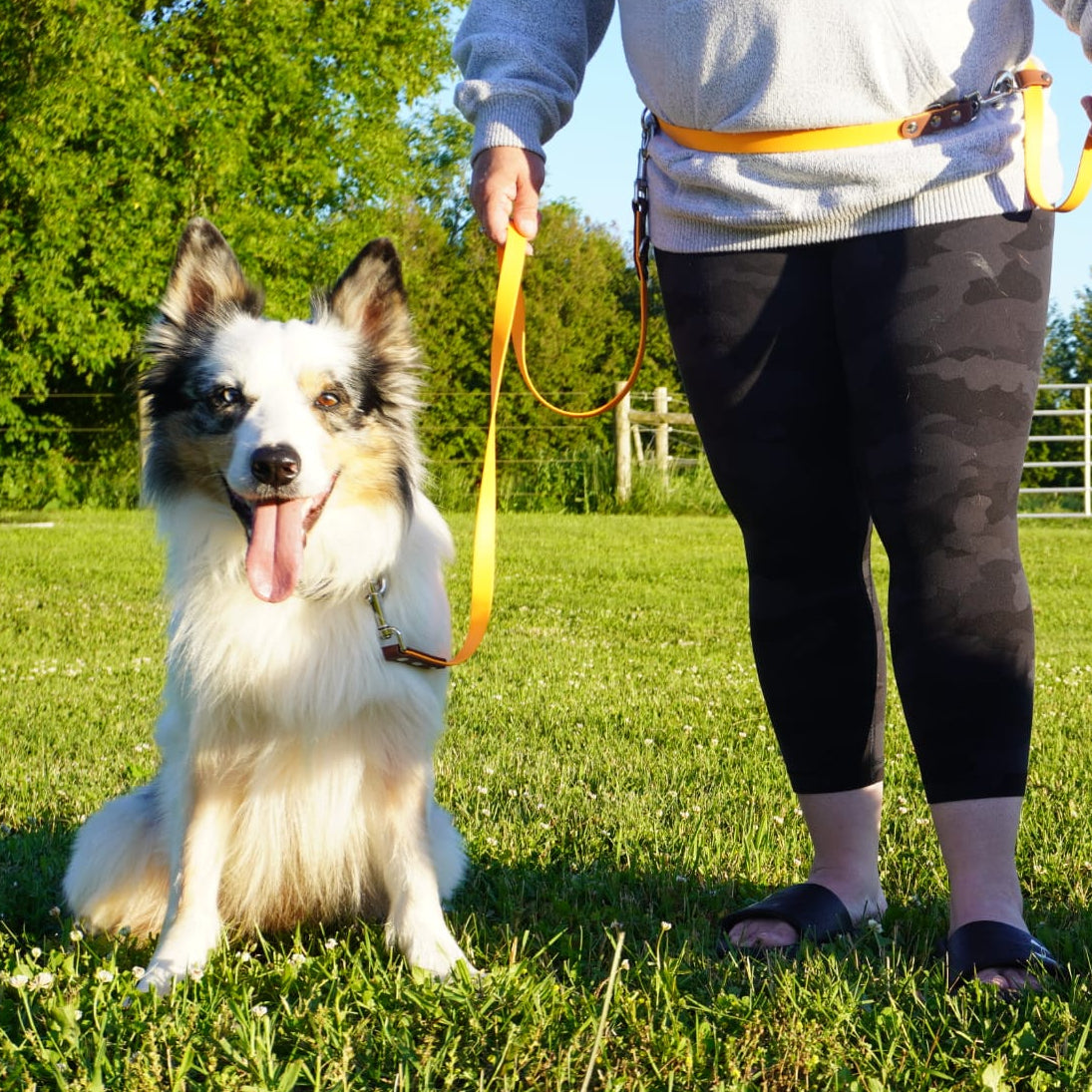 All of our BioThane® leashes are handmade to order, our leashes are durable and have a soft PVC coated polyester webbing material that feels like broken- in leather but without the maintance. It is soft, comfortable and does not chafe. In addition, BioThane® is stink-proof, waterproof, durable & holds its flexibility in cold weather and are extremely easy to wash - just use soap and warm water.