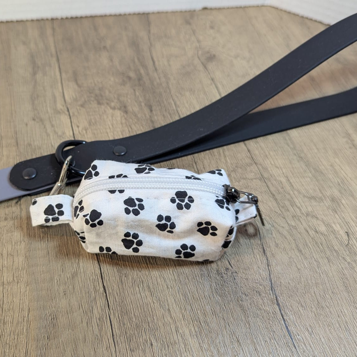 This poop bag holder is lightweight and made of 100% cotton and polyester cotton blend fabric lining.