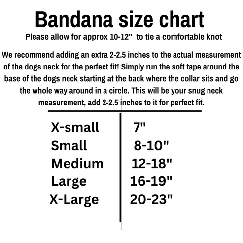 To shorten the drop length, simply cuff the bandana by folding the top edge down. Exact dimensions can vary slightly as all items are made by hand.